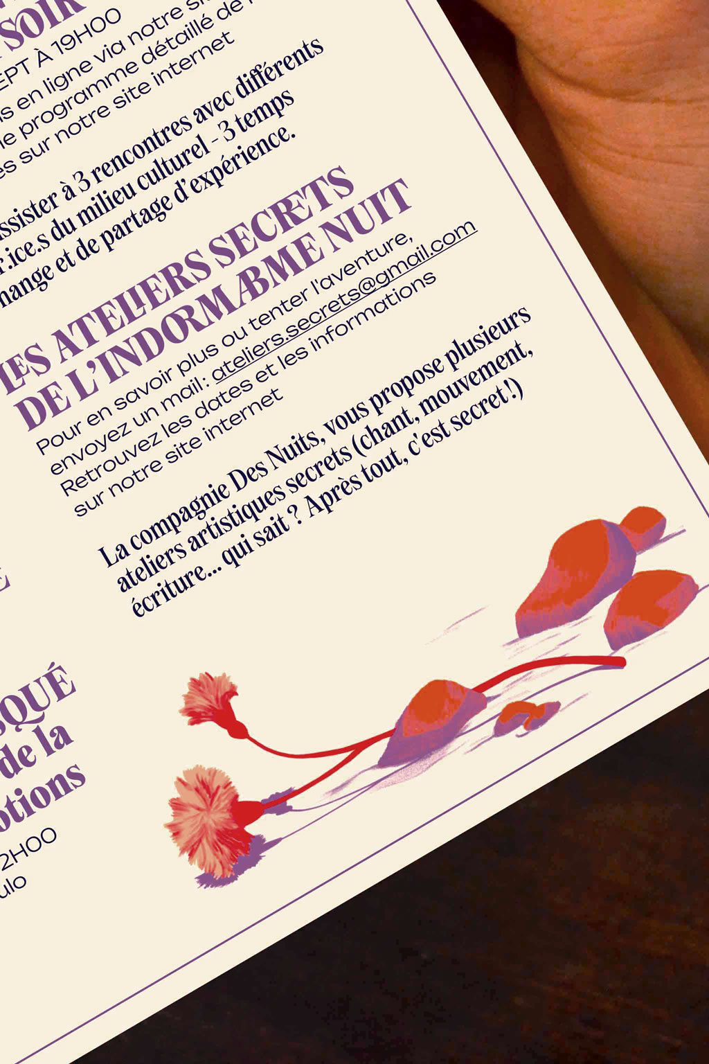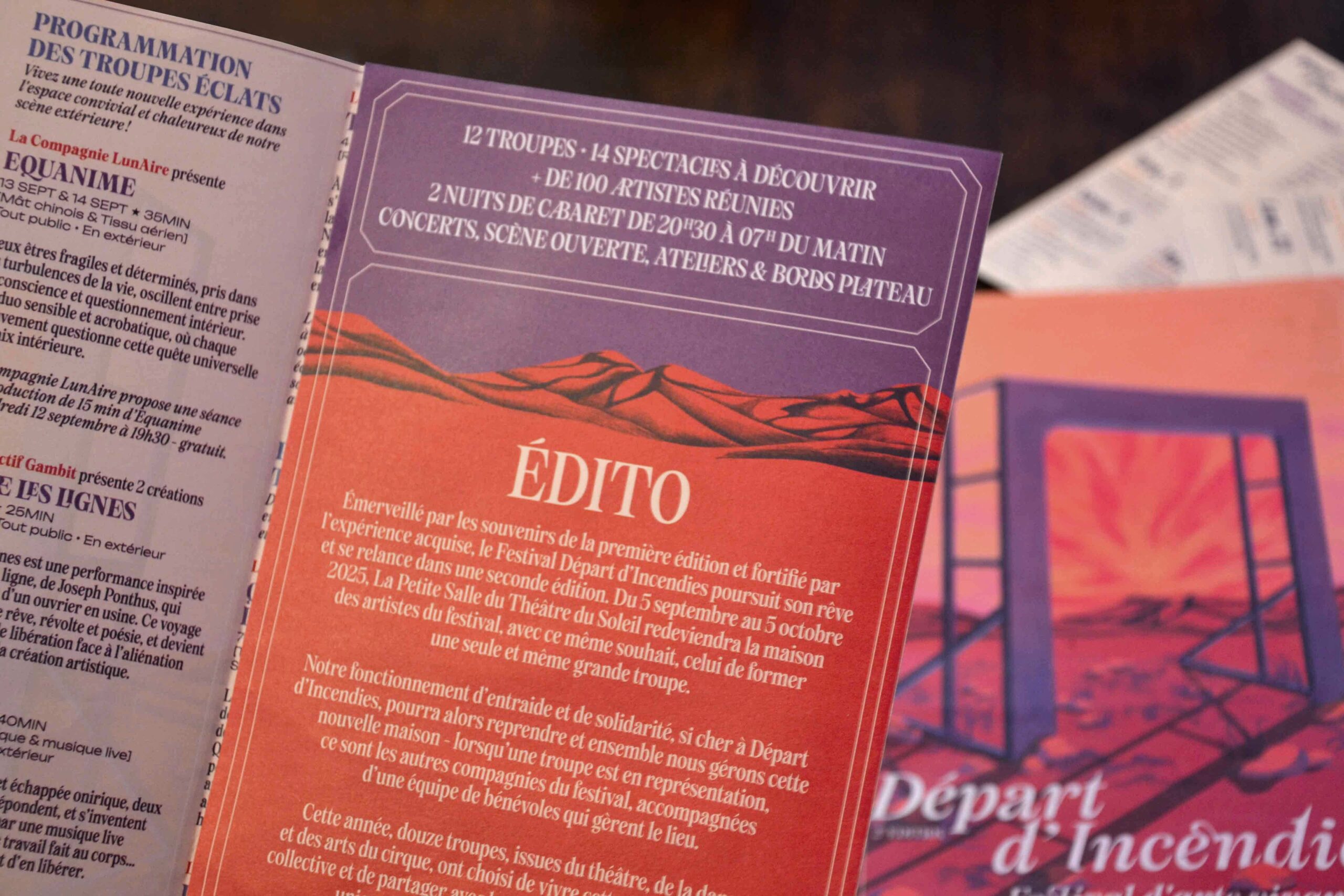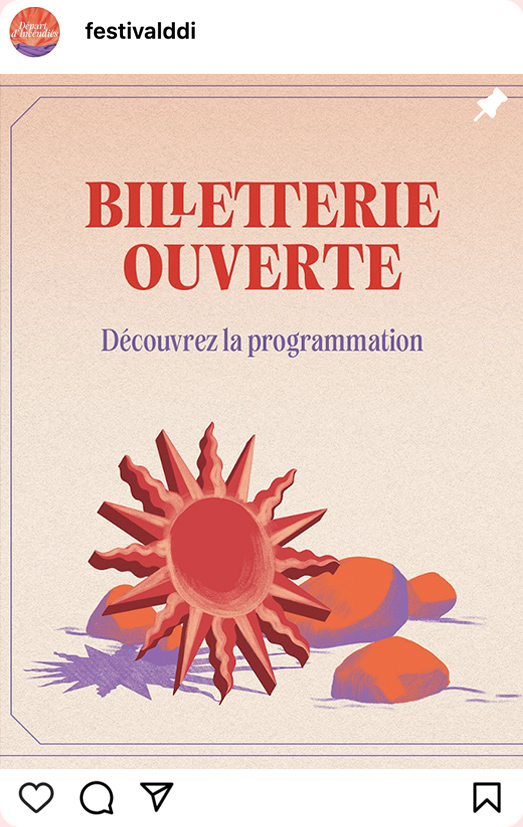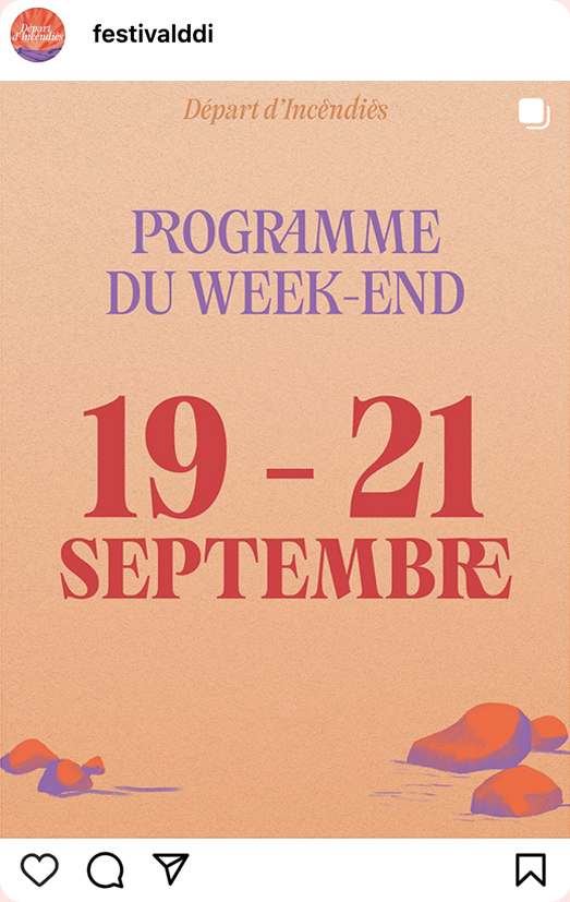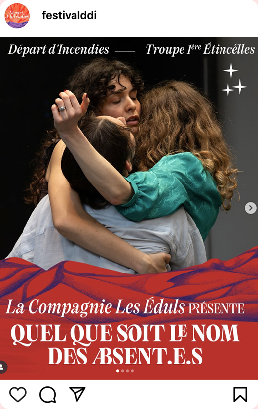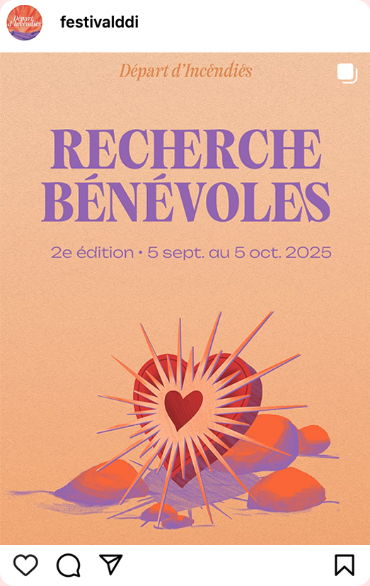 Direction artistique, illustration et déclinaison des supports de communication : affiche de festival, affiches de troupes, brochure, réseaux sociaux, scénographie